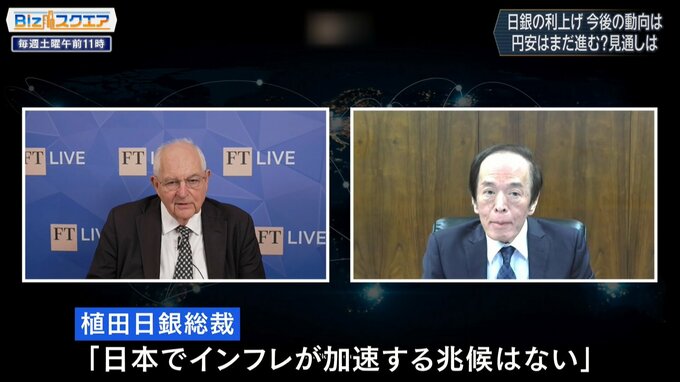 そんななか日銀の植田総裁は9日夜、イギリスの経済紙フィナンシャル・タイムズのイベントに出演。「インフレが加速する兆候はない」としながらも…