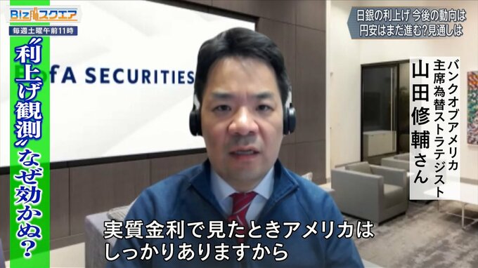 「実質金利で見たときにアメリカはしっかりある。日本の金利がたとえ0.25%程度変わっても、あまり効果がないという金利の水準」