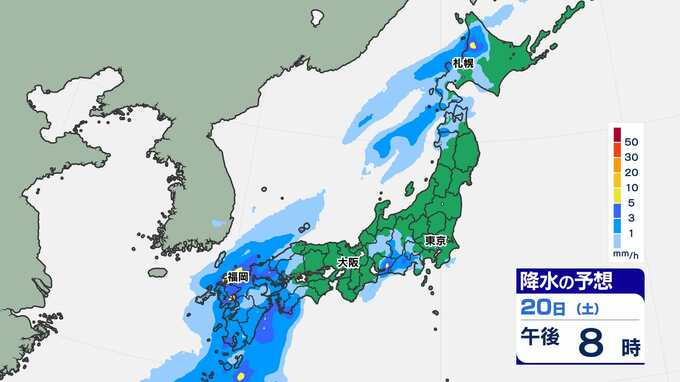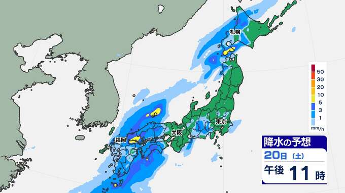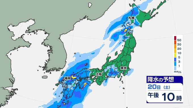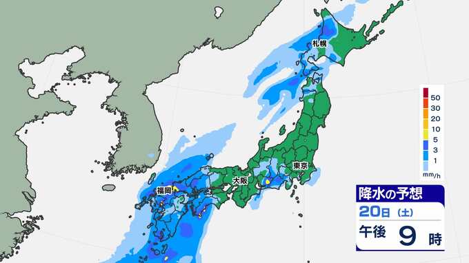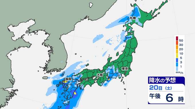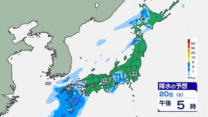 【土日 全国で雨】東京16℃ 大阪18℃ 福岡19℃ 暖かい土日「雨はいつ どこで?」【雨シミュレーション20日(土)~21日(日)/ 全国各都市の週間予報】雪国では「なだれ」に注意