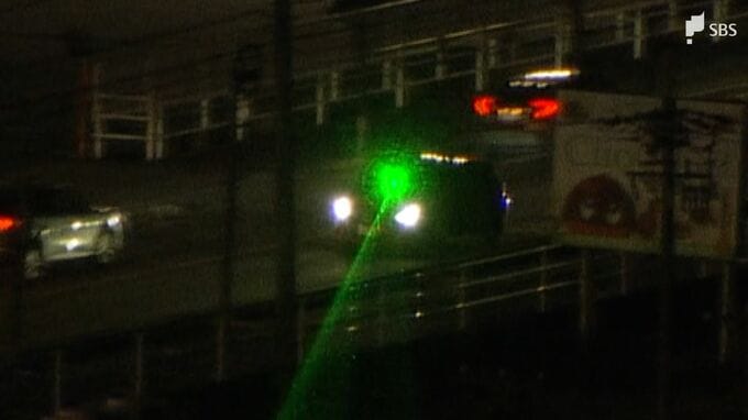 「走行中の車からレーザーが照射されました。緑色のレーザーがヘリに向けて照射されました」
