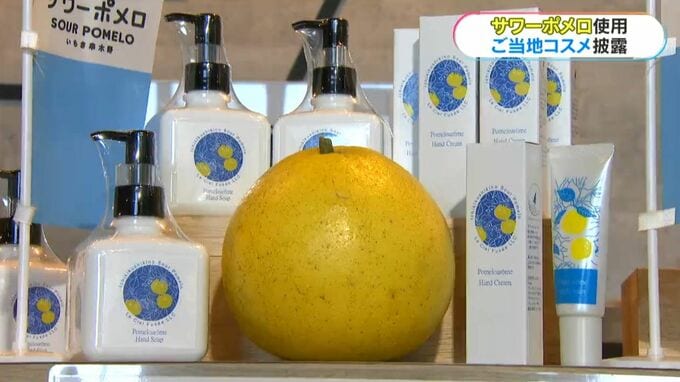 志學館大学の学生が作る、いちき串木野市特産のサワーポメロを使った「ご当地コスメ」が18日、大学でお披露目されました。こちらのハンドクリームとハンドソープ。鹿児島県いちき串木野市特産のサワーポメロが使わ…