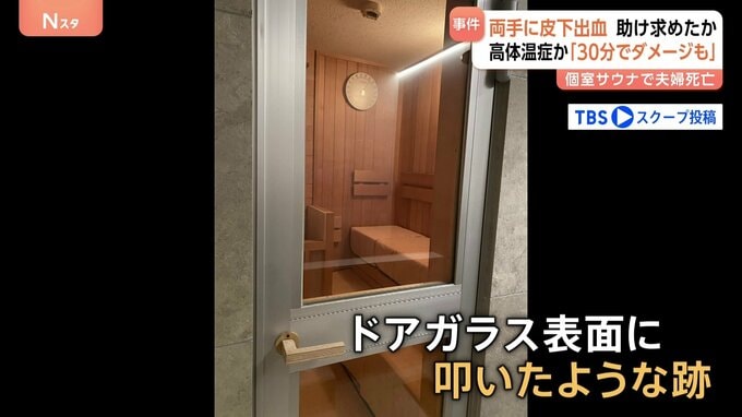 東京・赤坂の個室サウナ店で夫婦が死亡した火事。妻を守ろうとしたのか、夫は妻に覆い被さるように倒れていました。その夫の両手には皮下出血があり、ドアのガラスを叩いて外に懸命に助けを求めたとみられています…