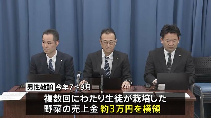 埼玉県教育委員会によりますと、男性教諭は今年7月から9月までの間、複数回にわたり生徒が栽培した野菜の売上金、およそ3万円を横領したということです。