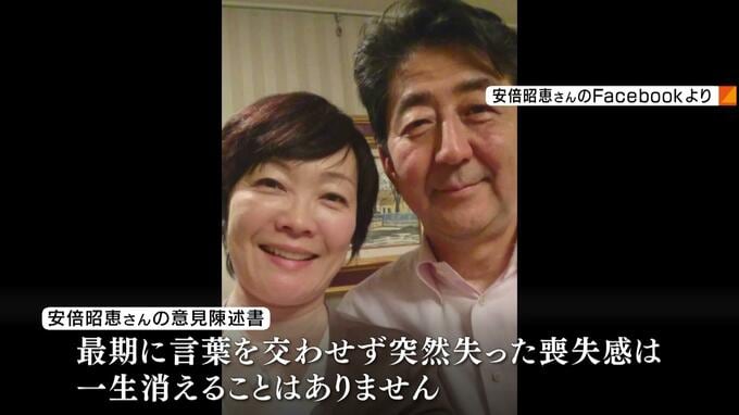(安倍昭恵さんの意見陳述書)「夫の身を案じ『あなたが危険な目に遭ったらどうするの?』と聞くと『政治は命がけでやるものだ、そのときは立派なコメントを出してくれ』と言われました。そのときは『嫌ね、縁起でもない』と冗談だと思っていましたが、本当にそんな日がくるとは夢にも思いませんでした。政治家・安倍晋三が、私にとってかけがえのないたった1人の家族でした。最期に言葉を交わせず、突然失った喪失感は一生消えることはありません。被告人には自分のしたことを正面から受け止め、罪を償うように求めます」
