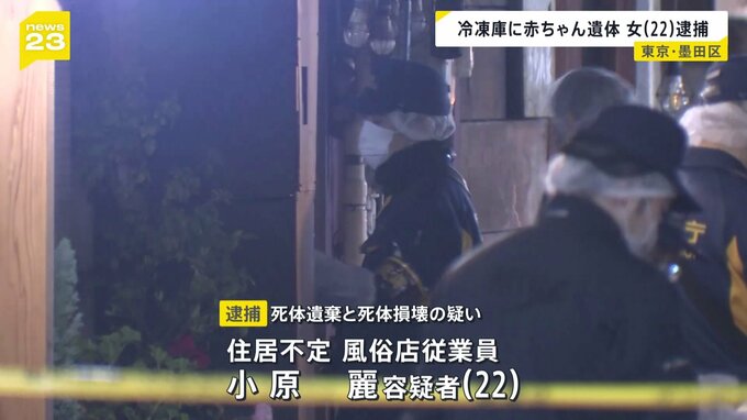 今月6日に東京・墨田区の風俗店で切断された赤ちゃんの遺体が見つかった事件。警視庁は18日、住居不定の風俗店従業員・小原麗容疑者(22)を死体遺棄と死体損壊の疑いで逮捕しました。小原容疑者は今年3月ごろ、生…