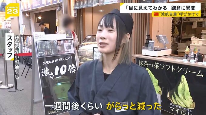 小町通りにある「鎌倉茶々小町通り店」。高級抹茶を使ったソフトクリームが人気で、外国人客の約7割は、中国からの客だといいますが…