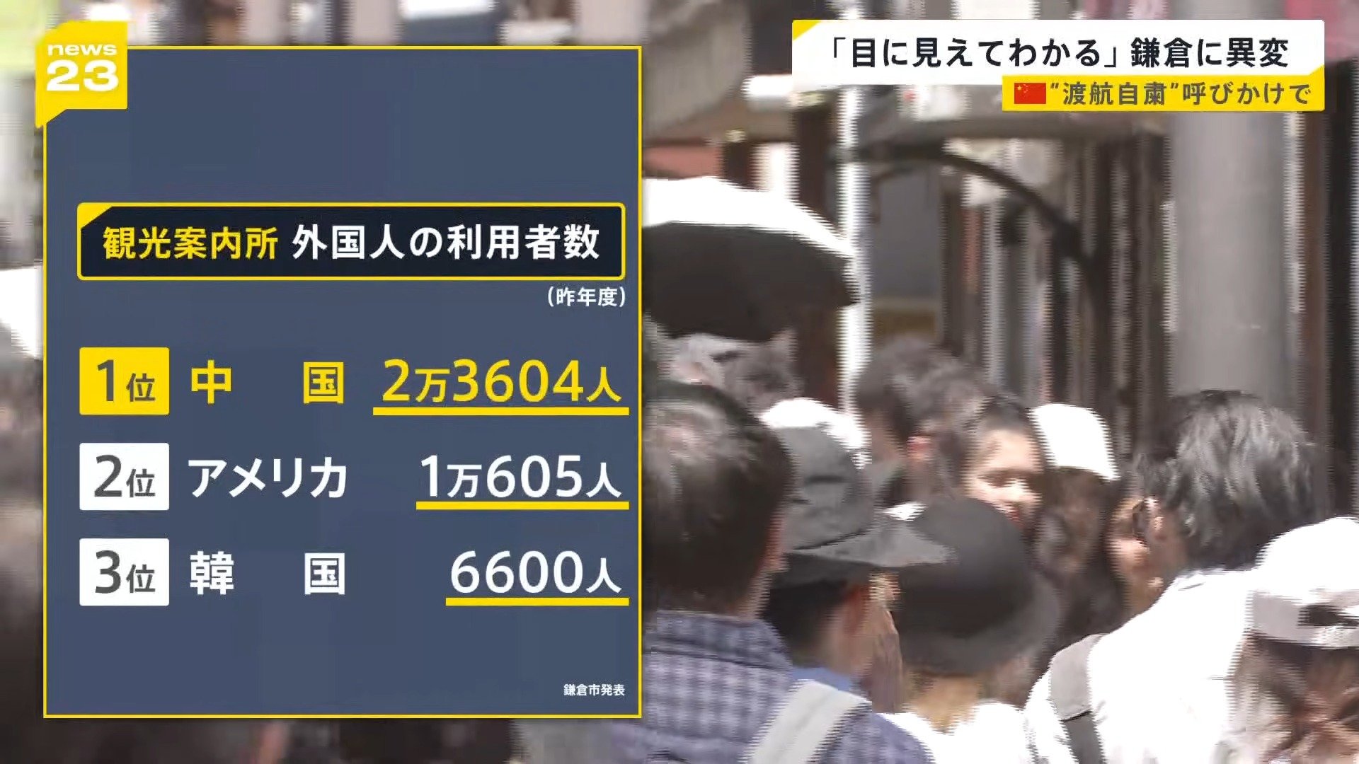 鎌倉市では2024年度、観光案内所を訪れた外国人のうち、最も多かったのが中国からの観光客でした。