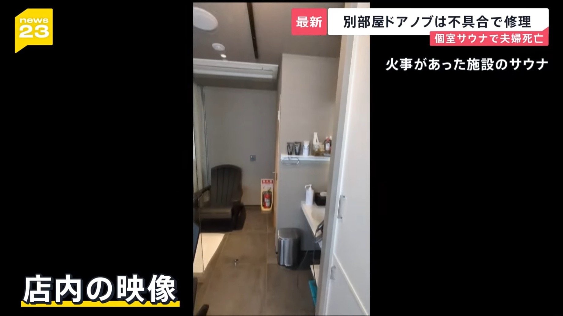 これは番組が入手した店内の映像。入るとすぐ休憩室で、棚には、くしなどがあります。その下の冷蔵庫には水も。シャワー室には浴槽が、水風呂でしょうか。その隣にあるのがサウナ室です。
