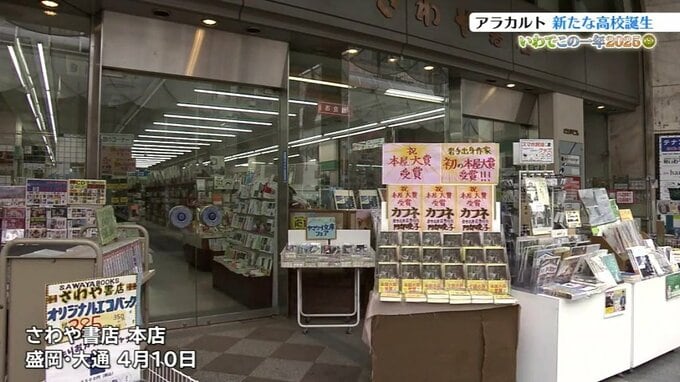「本屋大賞の受賞から一夜明け、店の外、そして入り口の目の前、さらにはレジの横まで盛岡市の書店はカフネ一色です」