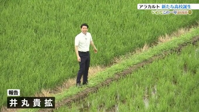 「ビッグフライ!オオタニサン!大谷選手が田んぼ一面に広がっています」