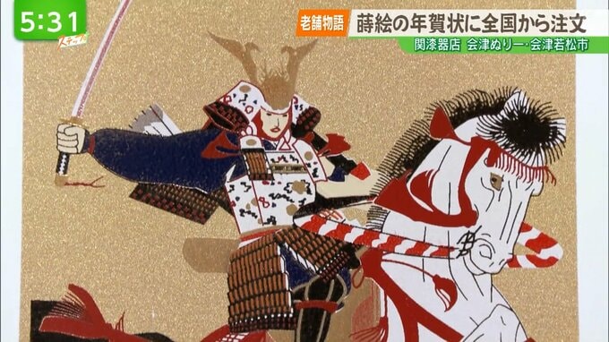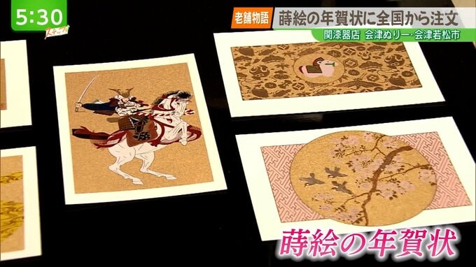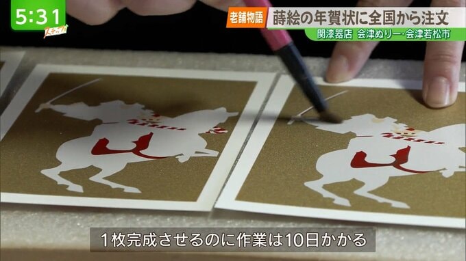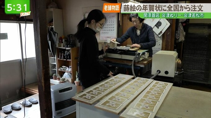 「これは蒔絵の年賀状を最盛期で作っているところです。(作っているのは)うちだけですね、これを始めて25年経ちますから。」