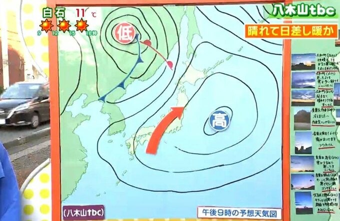 高気圧に覆われ暖かな空気流入