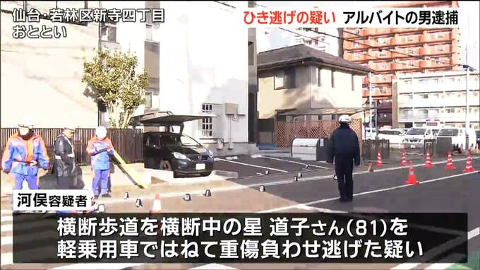 12月17日、仙台市内の交差点で女性が車にはねられ意識不明の重体となっているひき逃げ事件で、女性をはねて逃走した疑いで18日、アルバイトの男が逮捕されました。