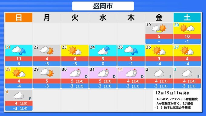 クリスマスから正月頃まで…ほぼ日本全域で12月24日頃~1月1日頃、この時期としては1…