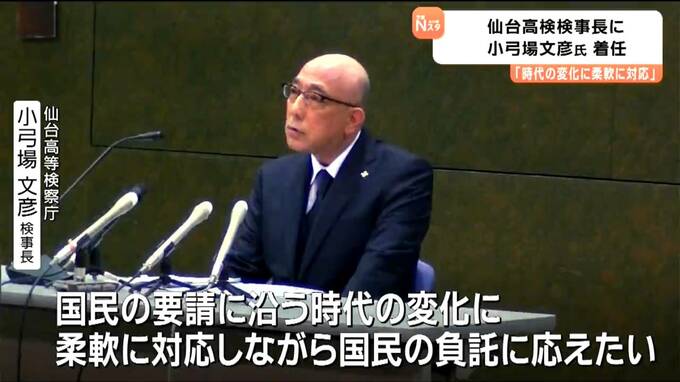 仙台高等検察庁の新しい検事長に小弓場文彦氏が着任し、「時代の変化に柔軟に対応しながら国民の負託に応えていきたい」と抱負を述べました。