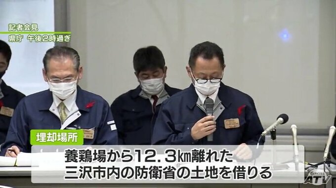 鳥インフルエンザが発生した三沢市の養鶏場では、約137万羽のニワトリの処分のあと、地中に埋めて鶏舎を消毒し、防疫措置が完了となります。この埋却場所について青森県は、養鶏場から12キロほど離れた市内にある防衛省の土地を借りるとしています。養鶏場の敷地内だけでは足りないためです。