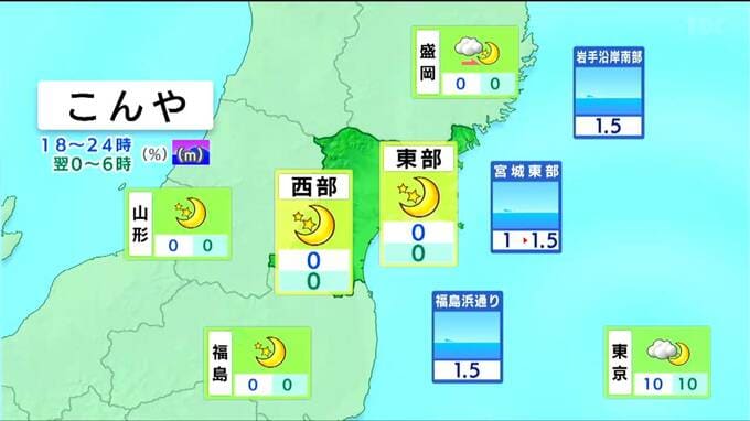 各地で青空が広がるでしょう。天気の大きな崩れはない見込みです。海上では、南西の風がやや強く吹くでしょう。波の高さは1.5メートルのち2メートルとやや高い見込みです。