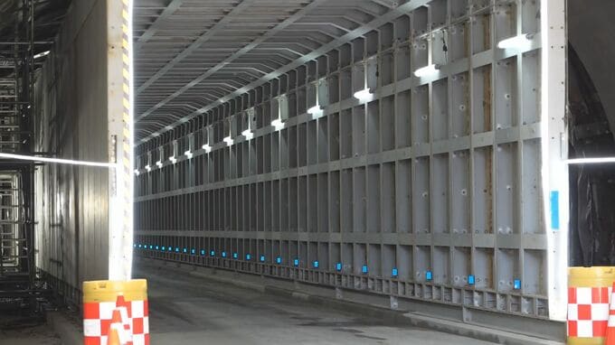 大谷トンネルの若山町側には、車両が安全に通れるよう内部に全長およそ130メートルのプロテクターが設置され、19日午後1時から住民と緊急用の車両に限って通行できるようになりました。