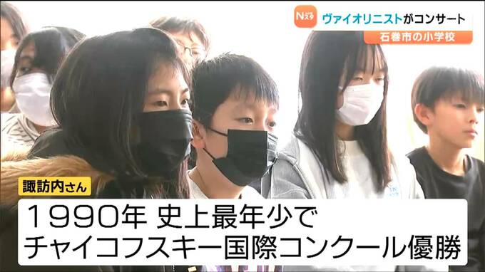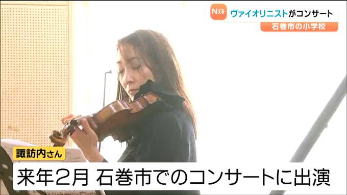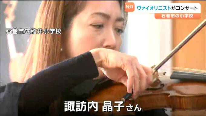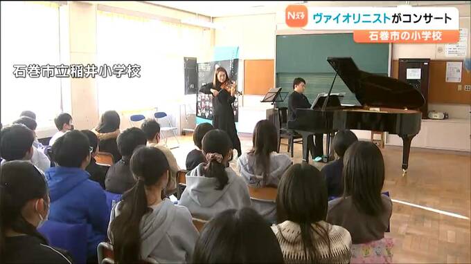 世界的に活躍するヴァイオリニストのコンサートが宮城県石巻市の小学校で開かれ、子どもたちが美しい音色に聞き入りました。