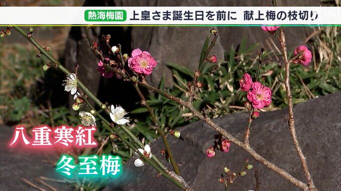 12月23日の上皇さまの誕生日を前に、静岡県熱海市では12月15日、献上梅の枝切りが行われました。梅の献上は皇室の財産だった熱海梅園が戦後、熱海市に無償で譲渡されたお礼に、市が毎年、上皇さまの誕生日12月23日…
