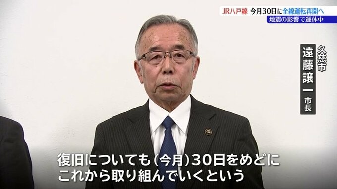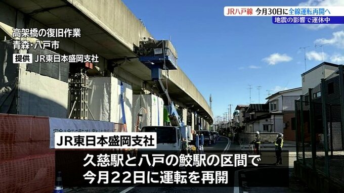 JR東日本盛岡支社は19日、久慈駅と八戸の鮫駅の区間で22日に運転を再開し、さらに30日午前9時をめどに全区間で運転を再開すると発表しました。