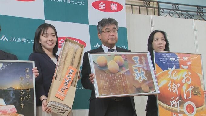 19日は、JA全農とっとりから歓迎を受け、県産の米や肉、梨などの農畜産物が贈られました。