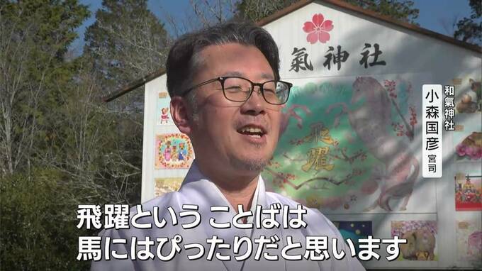 新年を前に岡山県和気町の神社に来年の干支、「午」に因んだ巨大絵馬がお目見えしました。