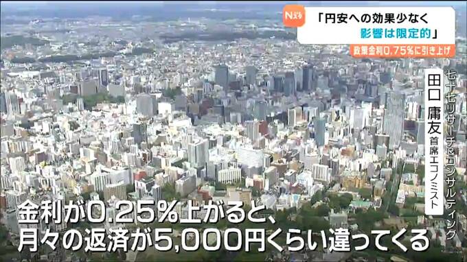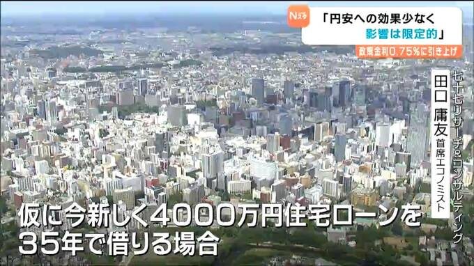 「仮に今新しく4000万円住宅ローンを35年で借りる場合、金利が0.25%上がると、月々の返済が5000円くらい違ってくる。仮に今後さらなる利上げを考慮するなら、場合によっては住宅ローンの駆け込み需要も起こりかねない」