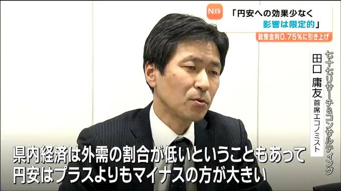 「県内経済は外需の割合が低いということもあって、円安はプラスよりもマイナスの方が大きい。利上げのタイミングが遅かく、市場もそれ(利上げ)を折り込んでいて為替市場があまり反応していない。期待されたような効果はかなり限定的」