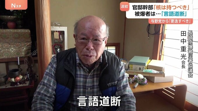 官邸幹部が「核保有すべき」と発言したことに、被爆地、長崎・広島から強い反発の声があがっています。長崎原爆被災者協議会 田中重光 会長「言語道断。80年前に核兵器の使用で、広島・長崎がどうなったのか。人…