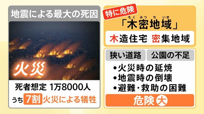 「首都直下地震」では、最大1万8000人の死者が想定されていますが、そのうち7割は「火災」による犠牲とされています。