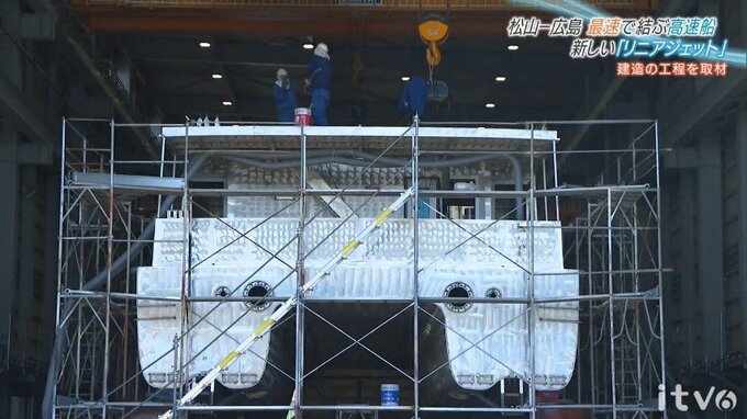 「船首がかなり細長く、尖った形状が特長。先が尖ることで、波が起きにくくなり抵抗が減る」