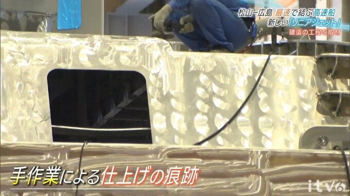 削り出されたアルミ合金製の部材を組み合わせることで建造される船体、一面についた模様は、手作業による仕上げの痕跡を示すものでした。