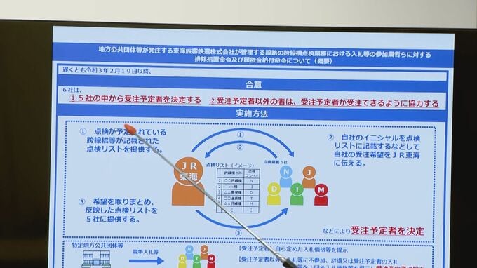 JR東海は、跨線橋の点検リストを提供し業者の希望をとりまとめて受注予定者を決めていて、112件の点検業務のうち111件を5社が受注していたということです。