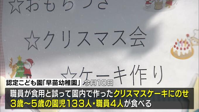 京都府八幡市の認定こども園で、クリスマスケーキ作りの際に、ケーキに誤ってビニール製のチョコチップをのせ、園児約130人が食べてしまったことが分かりました。