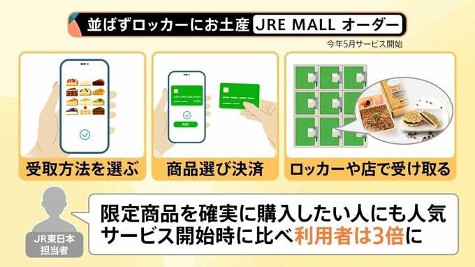 JR東日本の担当者によると「限定商品を確実に購入したい人にも人気。サービス開始時に比べ、利用者は3倍になっている」ということです。