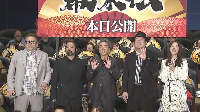 俳優・ムロツヨシさんと佐藤二朗さんがダブル主演を務める映画『新解釈・幕末伝』の初日舞台挨拶が行われ、ムロさんと佐藤さんをはじめ、山田孝之さん、広瀬アリスさん、福田雄一監督が登壇しました。
