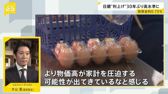 政策金利0.75%に引き上げ「より物価高が家計を圧迫する可能性」