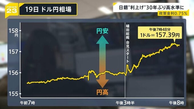 利上げで円安が止まるとの期待もありましたが、会見を見た市場関係者は「引き締めにはまだまだ及び腰。あまりやる気が感じられなかった」と分析。