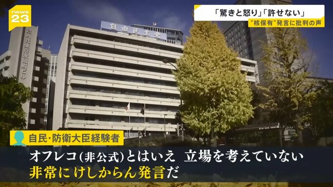 自民党の防衛大臣経験者からも「オフレコ(非公式)とはいえ、立場を考えていない非常にけしからん発言だ。外交に影響を及ぼすことを危惧している」との声が。
