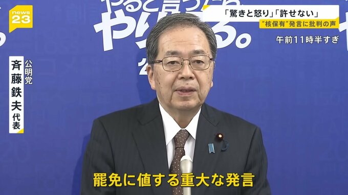 「被爆80年の節目の年に、このような発言が出たことに対して、驚きと怒りを感じております。罷免に値する重大な発言」