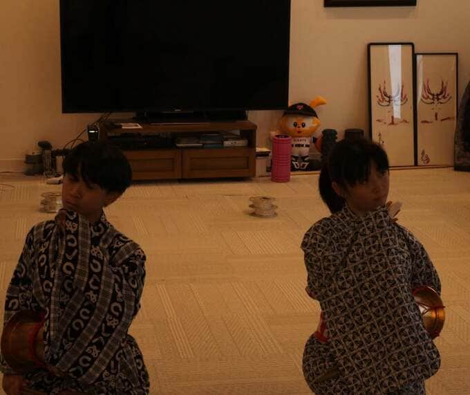 團十郎さんは「家でも稽古。」と一言だけテキスト。写真では、市川ぼたんさん・市川新之助さんの姉弟が、自宅のリビングルームで稽古している模様が投稿されています。