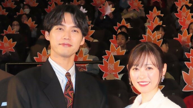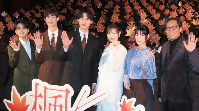 Travis Japanの宮近海斗さんが映画『楓』の公開記念舞台挨拶に福士蒼汰さん、福原遥さん、宮沢氷魚さん、石井杏奈さん、行定勲監督とともに登壇しました。