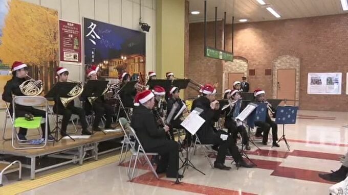 この催しはJR福島駅を利用する人や地域に人への感謝の意味を込めてJR東日本福島支店が開きました。コンサートでは、福島南高校の吹奏楽部や学生や社会人が福島市を拠点に活動する吹奏楽団 福島ウインドアンサンブルなどがクリスマスソングを披露して、訪れた人たちを楽しませました。
