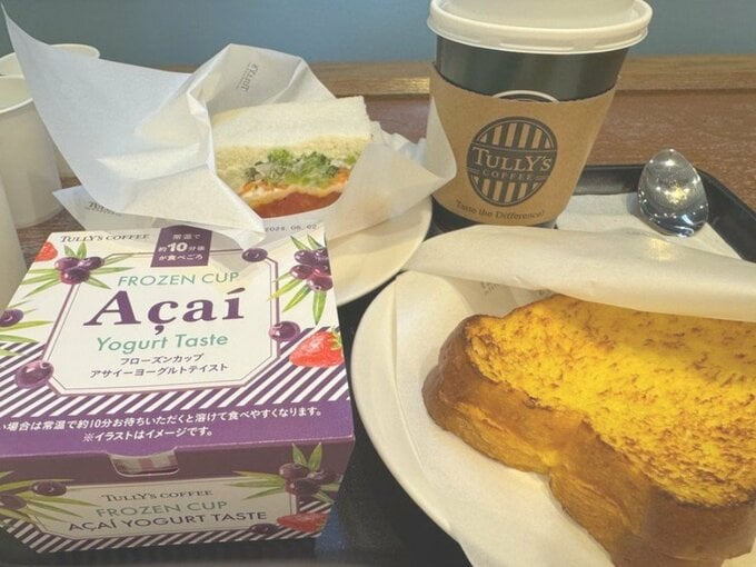 最後は、昼食に食べたフレンチトーストにサンドイッチ、ヨーグルトなどが並んだ画像を添えて、「またまたよく食べる 普通に会話をすることは、今の私にとって、もの凄いエネルギー消費となるからって」「言い訳」と、照れくさそうに締めくくりました。