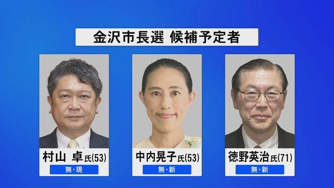 金沢市長選をめぐってはこのほか、自民党金沢支部が推薦する現職の村山卓氏、共産党系の市民団体で活動する中内晃子氏、旧統一教会=世界平和統一家庭連合の元会長・徳野英治氏が立候補を表明しています。