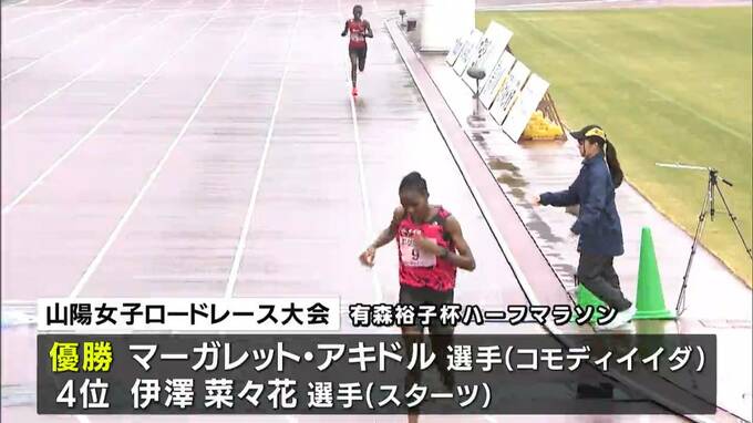 午前10時にスタートしたハーフマラソンには74人がエントリーしました。序盤、4連覇を狙うマーガレット・アキドルと倉敷高校出身のアグネス・ムカリらケニア勢が抜け出します。去年3位だった伊澤菜々花らも食らいつきますがその差を縮めることは出来ません。