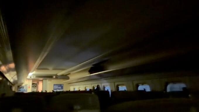 【提供:視聴者】地震発生直後の東北新幹線の車内