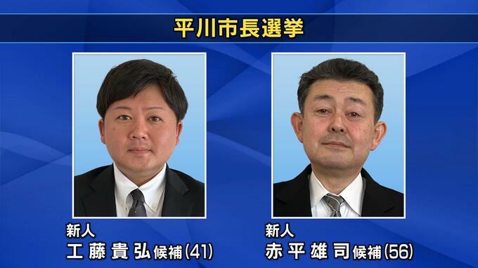前の市長の辞職に伴う青森県の平川市長選挙の投票が21日行われています。立候補したのは届け出順に新人で前の県議会議員・工藤貴弘氏(41)と、新人で元農機販売業の社長・赤平雄司氏(56)です。投票は市内24か所…