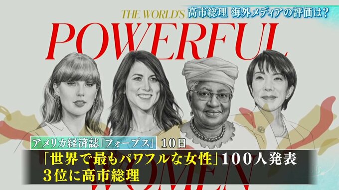 12月、アメリカの経済誌「フォーブス」は「世界で最もパワフルな女性」100人を発表し、3位に高市総理を選出。日本初の女性総理誕生に、「世襲制や男性優位の政治が長く続いてきた国において、現状からの脱却を意味する」と評しました。